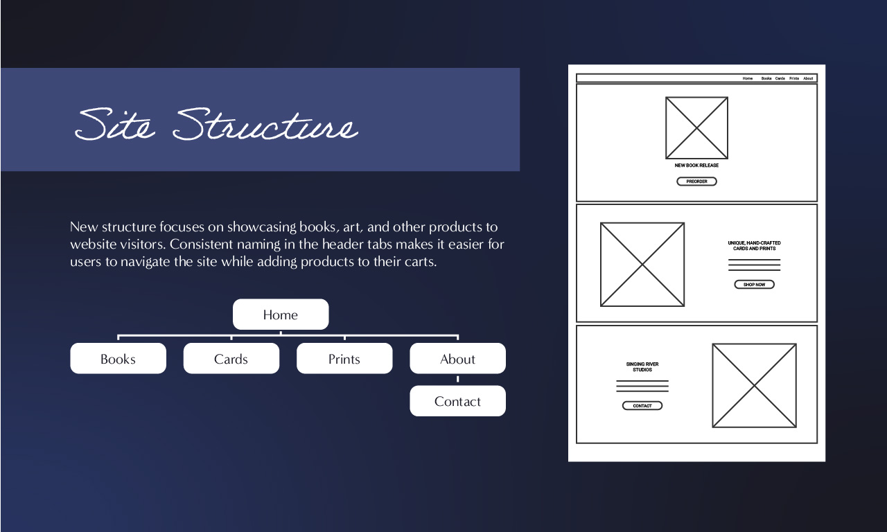 To accompany the new book release, the author wanted to update her SquareSpace website with new content and a fresh design. The old site was a little confusing to navigate, originally created just to promote and sell the first book she published. She wanted a design that could flexibly showcase her studio work and sell multiple types of media.
